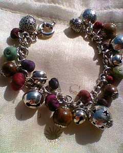 Bracelet gas bijoux, breloques, perles verre, bois, verre murano, pompon.
